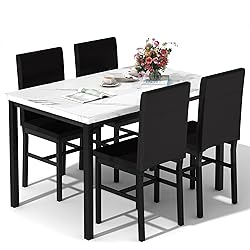 DKLGG Dining Table Set for 4, Modern Kitchen & Dining Room Sets Faux Marble Table with 4 Leather Chairs for Small Space, Home Kitchen, Apartment, White