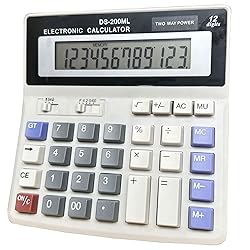 Desk Calculator Large 12 Digit Display, Dual Power Basic Calculator Desktop, Big Button for Office, Business, Home and School (Grey).
