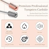 DRILL BITS FOR NAILS – You will get 2 pcs Large Barrel Smooth Top Carbide Nail Drill Bits, rose gold and space grey color. Both Coarseness are Coarse. Fits universal 3/32’’(2.35mm) shank. Suitable for beginners, experienced, salon nail tech. COARSE NAIL DRILL BIT – Coarse nail bits are sharp and rough, perfect for debulking acrylic nails, removing hard gel, poly gel, and sanding dip powder nails easily and fast. Suitable for experienced, salon nail techs. NOT SUITABLE FOR BEGINNERS. PROFESSIONAL CARBIDE NAIL DRILL BITS – Made of premium quality YG6X tungsten carbide materials. Unlike other metals, a tungsten carbide drill bit will corrosion, low vibration, and heat dissipation, providing a long use. SAFETY NAIL DRILL BIT SMOOTH TOP – The smooth round top carbide drill bits are rounded with straight barrels to protect the cuticles and side walls from scratches and cuts on contact, quickly removing the color and powder gel. NAIL DRILL BITS FOR ACRYLIC NAILS – Two rotate directions, suitable for left and right hands, you can choose the direction in different situations. It needs a nail drill with a forward and reverse function. Cross teeth design, high sharpness, efficient work, and less dust. NAIL DRILL BITS FOR GEL NAILS – Drill bits have many uses: from shaping, carving, smoothing, backfilling, and removing gel, but carbide bits should not touch the natural nail beds. Use a brush to remove the dust, soak it in alcohol/acetone for a few minutes, wipe clean, and put it away for next use.