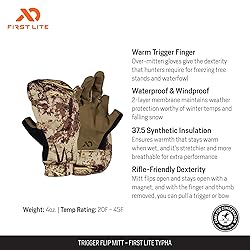 - The First Lite Trigger Flip Mitt keeps your hands warm on cold hunts. The mitt flips open via magnets for rifle- and bow-specific dexterity. Without a thumb or index finger, the Trigger Flip Mitt lets you feel triggers and bow strings. There’s also a suede panel on the thumb to act as a nose wipe.