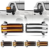 Gempro LED Sequential Amber Side Mirror Marker Turn Signals White Parking Cargo Lights Switchback Tow Mirror Lamps for 2020-2024 Chevy Silverado/GMC Sierra 2500 3500, Smoked Len