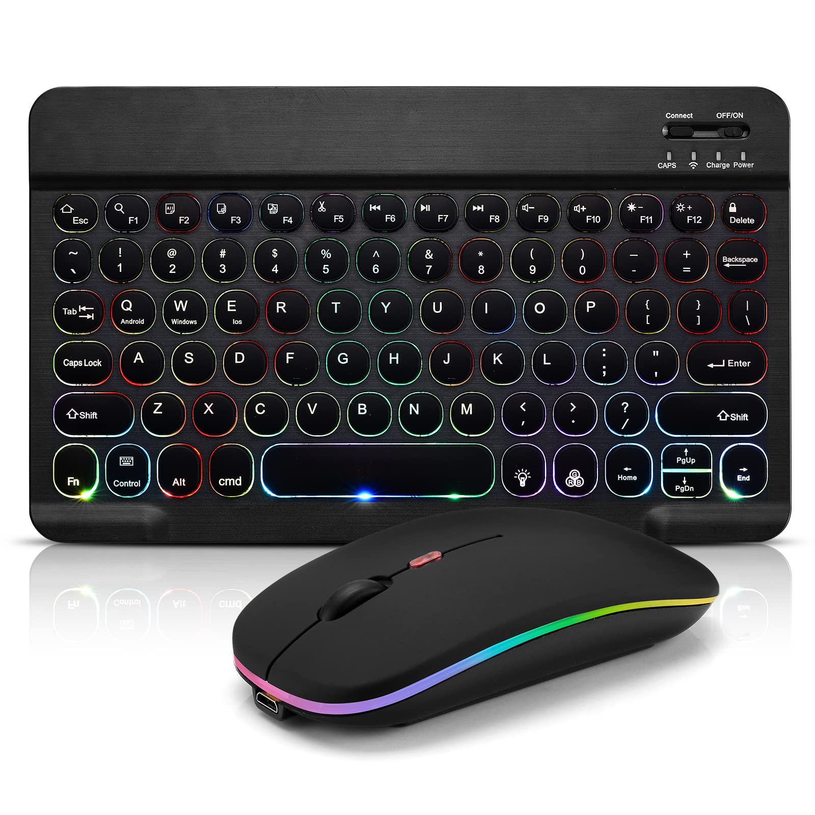 Bluetooth Keyboard and Mouse Combo for iPad - Rechargeable Wireless Keyboard & Mouse with 7-Color Backlit Compatible with iPad 9th/8th Gen, iPad Pro/Air/Mini, iPhone14/13/12 Pro, Round Keys Pink