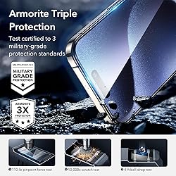 Compatibility: only for iPhone 15 Pro Ultimate Screen Protection: Armorite glass, tempered to the highest degree, provides 110-lb impact resistance and ultra-tough scratch resistance to keep your screen powerfully protected against drops, bumps, and scratches Smooth and Clean: thin oleophobic coating resists fingerprints and smudges to ensure your screen always stays clean and totally responsive Easy to Apply: included application frame for screen protector and alignment guide for individual lens protectors, plus cleaning kit and dust-repellent adhesive, make bubble-free application quick and easy What’s Included: 3 Armorite screen protectors, 2 sets of individual lens protectors, application frame, alignment guide, cleaning kit, and manual