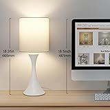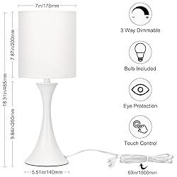 Dimension: Height: 18.25in, Base Diameter: 5.5in, Weight:2.43Ib. Sleek base with compact design, the table lamp will not take up much room on your space. Perfect for setting on bedside tables, entry tables, dressers or anyplace. You could read more size information on the second photo before purchasing. 3-way Dimmable & Touch Control: Just need to tap the lamp base with your finger, you could change the light brightness on 3 stage (Low, Medium,High) conveniently. No need to get up in the middle of the night to search for a small switch any more, this white table lamp would let you catch up on your sleep easier and cosier. Metal Base with Soild Construction: Based on the high-quality metal construction, our small lamp can stand firmly on your study desk, will not be tipped over by accidental nudge or bump, this durable lamp would definitely offer you compelling user experience. Best Choice for Your Decoration: Designed with simple and clean line, the nightstand lamp could provide elegant look in modern flair, would be easily coordinated into your existing style, such as contemporary art decor or minimalist home decor. LED Bulb Included: The package contains an A19 9W 3000K edison led bulb, you could easily assemble the touch lamp without rushing to find the right size bulb match it. It would also be the best gift option for any occasions.