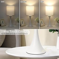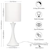 Modern Table Lamps, 3 Way Touch Control Table Lamp, Dimmable Desk Lamp, White Nightstand Lamp with Fabric Shade, Small Bedside Lamp for Living Room, Dorm,Home Office, LED Bulb Included
