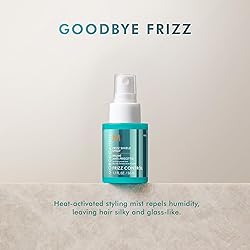 - Moroccanoil Frizz Shield Spray protects hair from many causes of frizz, including humidity, dry air, friction, pollution, and other environmental aggressors. The weightless, heat-activated spray instantly leaves hair silky, soft, and smooth with a glass-like finish while providing long-lasting prevention of unwanted frizz, flyaways, and static. The light-as-air formula is powered by naturally derived and upcycled ingredients that care for the hair from the inside out, including nourishing argan oil to help enhance manageability and reduce frizz, jackfruit extract to hydrate the hair for increased frizz resistance, and amaranth peptides to help prevent damage and reduce friction for smooth, bouncy hair. HydroResist Technology wraps strands to repel humidity and provide instant styling benefits, as well as enduring protection against environmental elements for perfectly styled hair that lasts for days.