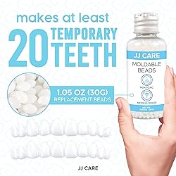 TEMPORARY TOOTH REPLACEMENT KIT – Tap your teeth into place with the JJ Care Tooth Replacement kit. These medical-grade polymer teeth replacement beads are crafted to match a tooth’s natural size, color, and shape. This temp tooth filling DIY kit is perfect for use until you can see your dentist or get a dental implant. TEETH REPLACEMENT KIT FOR MISSING TEETH – This temporary tooth replacement kit comes with everything you will need to create your own natural-looking looking replacement tooth. The kit comes with medical-grade polymer plastic beads, a mouth mirror, tartar scraper, steel tweezers, and a detailed manual. NONTOXIC REPLACEMENT TOOTH – The missing tooth replacement kit comes with biodegradable polymer beads that you can sculpt into a realistic tooth in just minutes. The partial teeth replacement beads are made of high-grade non-toxic polymer plastic which does not contain BPA and is perfectly safe for oral use. EASY TO FOLLOW INSTRUCTIONS – Replacing a missing tooth is no easy feat. JJ Care’s tooth beads replacement set includes detailed instructions on how you can make a faux tooth in the comfort of your own home. Just warm up the replacement bead, mold, and attach! WITH DENTAL TOOLS – To make fake tooth replacement easier and more fun, your purchase includes basic dental tools that you’ll be needing to ensure the perfect tooth replacement: a German steel mouth mirror, tartar scraper, and steel tweezers.