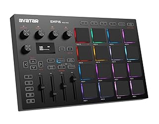 Cool Midi Controller - EMP16 midi pad with 16 fat RGB illuminated beat pads, offer 16 customizable lighting colors, provide 4 banks expandable controls for a total of 64 assignable pads. Light weight and portable, perfect for beat makers studio recording, making music outdoor and band gig. No Cable Mess - Optionally powered by USB or by 2 AA batteries(not included). BT5.0 can build wireless connection to any DAW on iPad/iPhone/iPod touch/Mac, no driver, no wire nor OTG required anymore, covenient for beat production.. Velocity Sensitive - The beat pads offer 3 velocity curves for you to select and you can set the threshold to get crosstalk protection. Also support to set 16 Level, Full Level /Half Level, Aftertouch, get the perfect fingerdrumming experience. Assignable Control- Equipped with 4 assignable faders, 5 assignable buttons and 4 assignable endless rotary knobs with a total of 12 assignable controls accessible via 3 banks. Packed rich features like classic Note Repeat, Time Division, Swing, Gate, Sequencer, Clock Synchronization, Transport and Tap Tempo controls for immersive performances. You can change a lot of settings quickly and simply at once. OLED display will place instant visual feedback of all your settings. You don't have to get extra editor on pc. More Outputs - EMP16 has USB MIDI plus standard MIDI inputs and outputs. Control everything from music software on your laptop to outboard MIDI gear, offer seamless integration from the studio to the stage. The included USB cable and 1/8"-to-MIDI adapter make it easy to connect. Take It Easy - Beginners can download the Cubase LE15 & Cubasis LE3 from Steinberg website, then use the code come with EMP16 to redeem it. You can step on music making journey without extra paying on DAW/VST software.