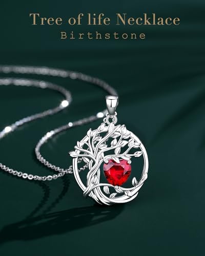 FANCIME Tree of life Birthstone necklace Sterling Silver Pendant Birthstone Necklace Gemstone Anniversary Birthday Jewelry Christmas Gifts for Mom Her Wife