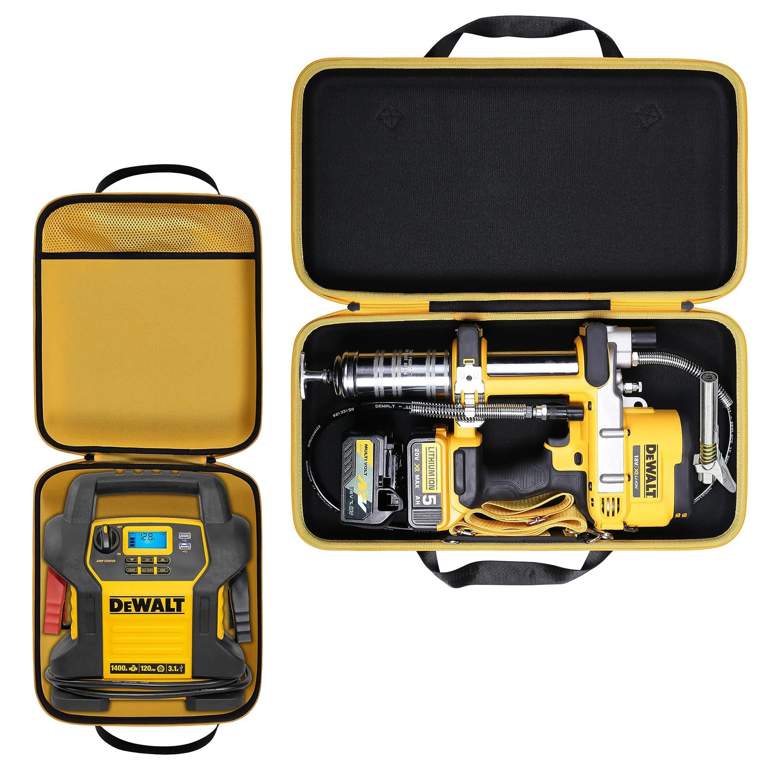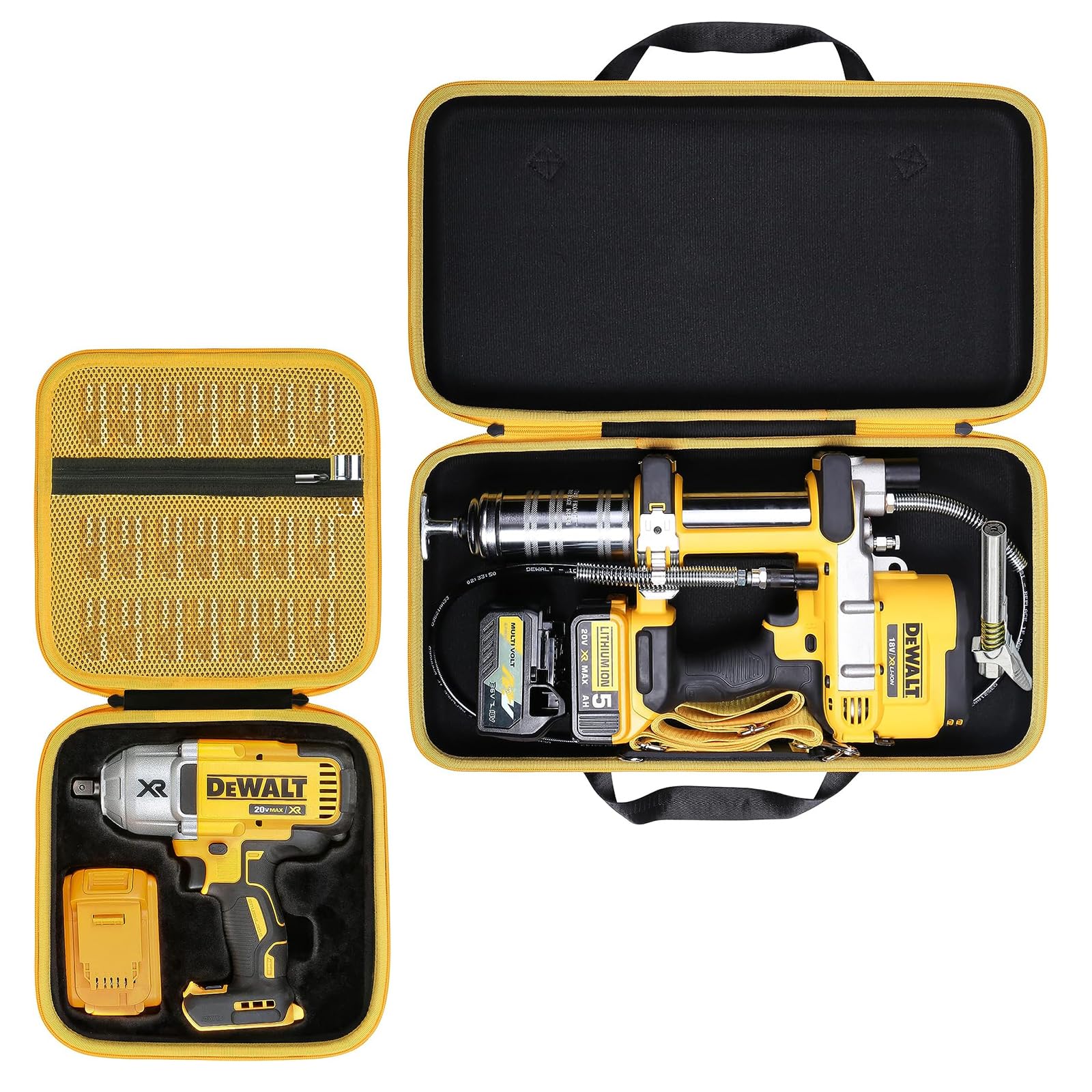 - Sleek design, a case designed for dewalt cordless grease guns fits perfectly. The hard shell of dewalt cordless grease gun with battery is black and the zipper is yellow. You can put the dewalt cordless grease gun in a hard case specially designed for the dewalt DCGG571M1/DCGG571B 20V Max for easy portability when you go out.