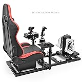 【Multi-functional Cockpit】This racing and flying all-in-one stand is compatible with flying and racing games. The matching ergonomic red seat is breathable and won't collapse, greatly improving simulation immersion 【Stabilizing Cockpit】40mm thickened square tube, column structure, 4-hole flange connection makes thisracing simulator cockpit more sturdy and durable without unwanted wobbling, and the friction pads provide more friction, which is more comfortable for the driver to ride 【Free Adjustment】 The height, length, pedal position and shift lever position of the stand can be freely adjusted. The front and rear position of the seat and the angle of the backrest can be adjusted 【Immersive Driving】The single column structure is designed with more comfortable foot space, the racing cockpit height pedal angle and gearshift lever position are adjustable, drivers can adjust to their comfortable driving position 【Adaptable Equipment】This steering wheel stand can be adapted to most brands on the market, fit for logitech G923 G29 G920, for truthmaster TX t300rs 【Special Note】Steering wheel, shift lever and pedals are not included