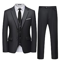【HOW TO CHOOSE SIZE】: Please refer to the WULFUL SIZE CHART in the description carefully, as the size on Amazon may not be accurate. If you are unsure about the size, feel free to inquire with us, and we will recommend the suitable size for you as soon as possible. size chart, accurate sizing, inquire for assistance 【MEN'S SUIT STRUCTURE】: The jacket features a single-breasted two-button closure, a notch lapel, 3 practical inner pockets, 4 sleeve buttons on each side, 2 front flap pockets, and 1 real handkerchief pocket. The pants have a flat front, an expandable waist, an invisible zipper, and 2 real back pockets. The vest includes 5 buttons and a V-neck design. suit structure, jacket features, pants details, vest design 【MULTI-OCCASIONS】: This men's tuxedo suit set is suitable for various formal or casual occasions, such as weddings, business meetings, work, dates, proms, banquets, graduations, festivals, interviews, fashion shows, and parties. The classic black 3-piece suit is also a great gift idea for your son, brother, father, friend, boyfriend, or husband. multiple occasions, formal and casual events 【PREMIUM STRETCH FABRIC】: The suits are made of a cotton-polyester blended fabric, providing comfort, breathability, softness, and ease of washing. The slim-fit style and simple design make these suits suitable for everyday wear. premium fabric, comfort, breathability, softness, easy washing, slim fit 【Washing and Maintenance】: Dry cleaning is recommended for these suits, and low ironing is possible if needed. Remember to hang the suits when not wearing them to maintain their shape. If hanging is not possible, storing them in plastic film bags after folding is also acceptable. If you encounter any problems with our suits, please feel free to contact us, and we will do our best to assist you within 24 hours. washing instructions, maintenance tips, customer support