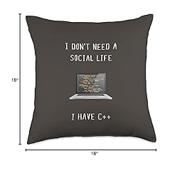 Programmer Gifts Accessories - K&K Programmer Shirt for Coder Engineer Developer C++ Funny Tee Throw Pillow, 18x18, Multicolor