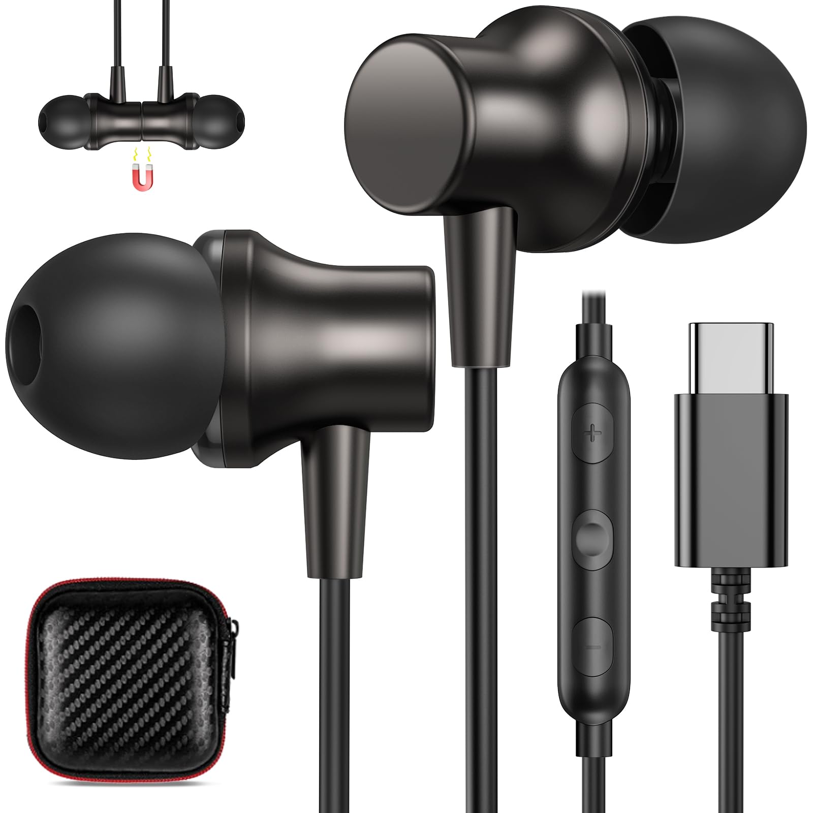 COOYA USB C Headphone Type C Wired Earbuds Bass Stereo Magnetic for iPhone 17 16 Pro Max 15 Plus iPad 10 Pixel 9 8a Noise Canceling in-Ear Earphone+Mic for Samsung A16 S25 Ultra S24 S23 OnePlus 13 12