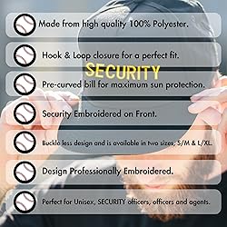 FITTED SECURITY HAT will fit your head firmly and securely. The structured upper part of the hat shows off the embroidered "SECURITY" Text on the front. Text size is approx. 4 inches wide. MOISTURE WICKING properties that help manage sweat and discomfort while being worn all day long. This hat is super comfortable, durable, and soft to the touch. You'll be able to wear this cap all day without experiencing any discomfort. FLEX FIT FITTED TECHNOLOGY: This unisex SECURITY baseball hat features an internal padded sweatband that offers superior comfort and prevents sweat from going into your eyes. This ball cap is especially useful for SECURITY officers who may be working in hot or humid conditions. MATCHING UNDERVISOR HAT that offers a cool appeal with the same under visor color. The best security cap offers two size options: Small/Medium and Large/X-Large. This fitted cap does not include any closure mechanism. The back of the cap is blank, providing the opportunity to personalize it with your own custom embroidery or patch. BE NOTICED ON THE JOB: The cap also features top ventilation holes that allow heat to escape, keeping you cool and comfortable even on hot days. With multiple color and thread options, you can match this cap to any uniform color combo, making it perfect for Men, Women, SECURITY officers, officers, and agents.