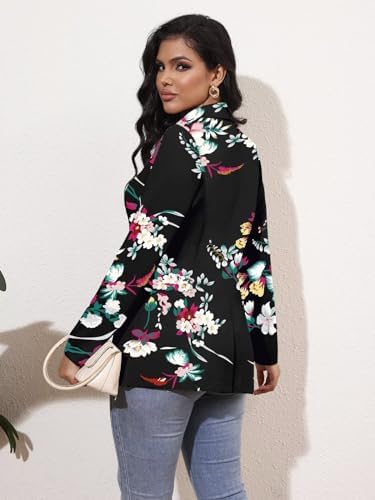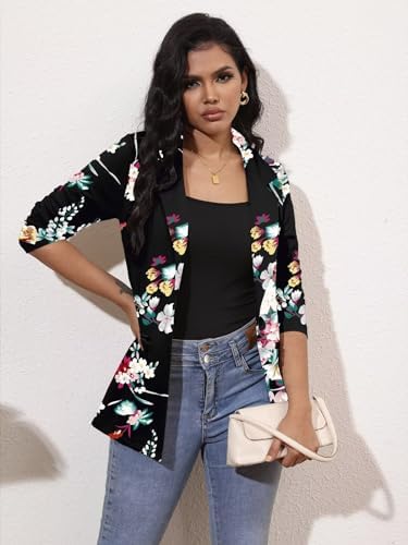 Genhoo Women's Long Sleeve Blazer Open Front Cardigan Jacket Work Office Blazer with Zipper Pockets