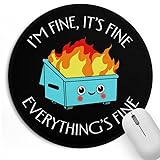 Dumpster on Fire Small Mouse Pad, Cute Funny Round Mousepad with Non-Slip Rubber Base, This is Fine Mouse Pads for Desk Accessories Laptop Gaming Office Supplies Decor(8.6 x 8.6 Inch)