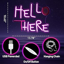 Hello There Neon Sign: Hello There neon lights are perfect wall decorations for stores and living rooms, the bright colors are very attractive, especially in the dark, make people's eyes stand out. Hello There light sign can also be adjusted to Hell Here for masquerade, cosplay, gothic party decorations. USB Powered: The alphabet neon sign is powered by a USB cable, which can be connected to computers, mobile power and chargers, very convenient. You can use Hello There LED sign outdoors or just put it on your nightstand as an ambient light at night. Safe & Durable: The Hello There neon sign is made of soft, unbreakable neon tubing and acrylic panels with dimmer and on/off switch. It lasts for a long time and stays cool, quiet and eco-friendly. Special Gift: Hello There neon light is the best gift for friends and colleagues at Christmas, New Year, birthday, party, show, special occasions and so on. Service & Guarantee: We are committed to providing high product quality and service, if there is any dissatisfaction with the product, please contact us, we will solve it for you as soon as possible.