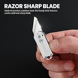 【Unique Design】With super mini size and stylish look, this cool keychain knife is resistant and sharp, a nice little gift for your friends. 【Versatile and Practical】Super convenient tool to open box, package, envelope, letter, carton, rope, strap, paper, plastic bag, wrapping tape, perfect for outdoors, home, office, emergencies and more. This utility folding knife is up to the task. 【Compact and Portable】With a folded length of just 1.57 inches and weighing only 26 grams, this mini EDC pocket knife is incredibly lightweight and easily portable. It can be conveniently carried with you every day, and you won’t even notice its presence in your pocket. 【Great Gift】This stylish knife with creative design is an ideal gift for your friends, family, and loved ones in any occasions like Birthday, Father’s Day, Anniversary, Thanksgiving, Christmas etc.
