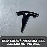 EVMIZE Tesla Model Y Emblem Bundle Front Rear T Badge Matte Black Glossy Black Logo OEM Dual Motor Set Metal Decal Sticker with 3m Adhesive Juniper (Matte Black)