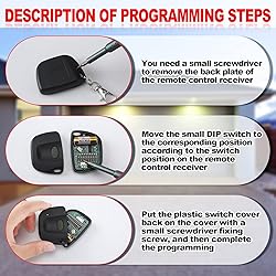 Package Content: you will receive 4 door opening remote with built in 23A 12V dry batteries, including instructions and keychain, which can meet your use needs, and you can operate them well Compatible Model: this garage door remote control is not universal, and is only compatible with linear multi code 3089 300MHz garage door remote control receiver with 10 dial switches; It is incompatible with the "8" or "9" dial switch; Please pay attention to the information before purchasing Programming Notes: the compatible with linear multicode 3089 300MHz garage door remote operates at 300mhz and has 10 dip switches, the instructions are clear and easy to program; Before starting remote programming, make sure your garage door opener is fully closed Safe and Reliable: the latest RF technology and strong security encryption design ensure garage opener better operating range, 300MHz frequency and rolling code technology to protect your access and connection, which can significantly reduce radio wave interference; The highest level of encryption avoids invasion, and long distance stable work effect provides you with the security of your garage property, so you can rest assured to buy Portable and Wide Range: small and light keychain remote switch is portable, can be put into the handbag, purse, pocket, etc., does not take up much space; Keychain remote control with strong signal transmission covers a wide range, convenient and flexible, bringing large convenience for you