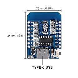 - Product SpecificationMain Chip: ESP8266 CH340G.WIFI Development Board, 4M bytes.supported (except D0).Support OTA on line.1 Micro USB connection.1 analog input (3.3V max input).5V 1A switching power supply onboard.11 digital input/output pins, all pins have interrupt/pwm/I2C/one-wire and a micro-USB connection.How to get it started in compatible for Arduino:- Setup driverBefore you use mini D1 boards, you need set up CH340g driver.- PythonOn Windows you need install Python 2.7.10.On Linux & MAC OSX, you don't need install it, comes preinstalled with OS.- Installing Hardware package "Boards Manager or GIT".We recommend using GIT, you can always get the latest version.Package Includes:3 x Type-C D1 Mini NodeMcu Lua WLAN WIFI Internet Development Board