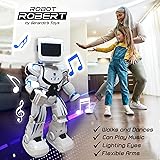 ✔️ FUN FOR ALL: Robert Robot is a cool, interactive toy suitable for ages six and up. He will be a super funny friend for any boy or girl. Robert has a backpack for water that when filled to the minimum level gives him power and ultimate energy. ✔️ WALKING & TALKING: RC Robot Robert loves to greet you with his light up his eyes! He can't wait to walk and talk with your small kids young and old. This robotic action figure speaks English and is ready to come alive with a wiggle and a giggle. ✔️ SING & DANCE: RC Robot Robert will rescue your children from boredom! Set up the dance studio so he can rock his flexible arms and get turning his head 180 degrees. Robot Robert has the music and the dance moves to get kids spinning and dancing along. ✔️ REMOTE CONTROL: RC Robot Robert comes with a remote controller that allows your little one to move him forward or backward or turn him left or right. Kids will love the ability to control him at a distance of 10 meters or 32 feet away with 2.4 GHZ technology. ✔️ PERFECT GIFT IDEAS: Prime Christmas, Easter or birthday gifts for the little explorer that loves robots and transformers. Your pet dog may even enjoy Robert's dance battle mayhem. Watch this popular and smart robot surprise all with fun and laughter.