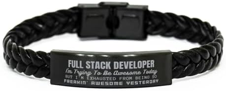 A Classic Braided Rope Engraved Stainless Steel Bracelet is a perfect gift for Full Stack Developer. This classic braided rope bracelet can be worn on any occasion. It's made of stainless steel and PU leather. The length can be adjusted if it's too long. The bracelet is 20cm long, so it’s suitable for men. The leather strap is black, so it'll match your clothes or shoes.