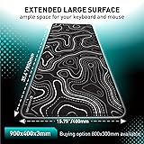Pixiecube Minimalist Topographic Map Mouse Pad - Contour Extended Large Stitch Edge Mousepad. Black & White Non-Slip XXL Gaming Desk Mat
