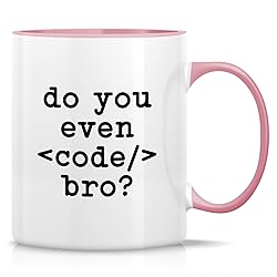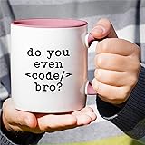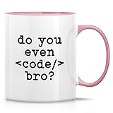 Retreez Funny Mug - Do You Even Code bro? Coder Computer Programmer Software Engineer Developer 11 Oz Ceramic Coffee Mugs - Funny Sarcasm birthday gifts - White Mug with Pink Handle and Inner