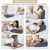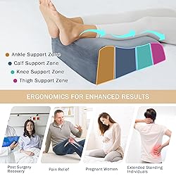 【LEG & BODY POSITIONING SOLUTION】Our leg wedge pillows offer positioning for leg swelling, knee, ankle and back pain relief, tested and approved by Orthopedist. Designed to alleviate discomfort, our leg elevation pillows or foot pillows offer targeted support for improved well-being. 【DESIGNED by American Orthopedists】Our pillow leg wedges is proudly designed by American ergonomics experts, ensuring every contour fitting the shape of your body. Whether for elevating your legs or as a backrest while sitting, our contoured leg pillows deliver the perfect support with a classic yet contemporary design. 【ONE SIZE FITS ALL】 With golden size 19.5'' (L) x 16'' (W) x 8'' (H), our leg bolster pillows help to take pressure off from legs and knees, alleviate hip pain and provide lumbar and back support while sitting. Postpartum pillow, post-surgery pillow, recliner pillow, bed pillow, back pillow, orthopedic pillow...You name it, our versatile leg pillows have got you covered. 【MEDICAL GRADE MEMORY FOAM】Our leg positioner pillows are made with premium high-density medical grade memory foam core. The bed wedge pillows to elevate feet is sturdy enough to retain its shape through continued use. Experience unmatched comfort and support, because you deserve the best. 【SKIN-FRIENDLY & WASHABLE COVER】Our dedicated leg rest pillows feature a hotel-quality fabric cover that is soft, breathable and machine washable. The easily removable zip ensures convenience. With an anti-slip bottom, it offers unparalleled comfort and enjoyment. Experience the suitable leg elevating pillows for your bed. Get yours now! 【1-YEAR WARRANT】We are confident of our elevating leg bolster pillows and take pride in our customer service. Firmly believe in this leg cushion, or contact us and we will make it right with no question asked. ORDER NOW and take a step towards an exquisite life!