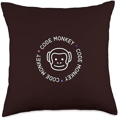 Programmer Gifts Accessories - K&K Code Monkey Programmer Coder Engineer Developing Throw Pillow, 18x18, Multicolor