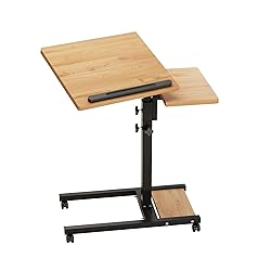 - Made of high quality and sturdy materials E1 grade MDF board, size perfect fit almost all types laptop, less likely to wobble and sturdy enough to supports up to 44 lbs of evenly distributed weight. Featuring a safety edge stopper,. . The modern stylish look can fit in well with any decor in your house, dorm or office. PRODUCT HIGHLIGHTS 1.Adjustable overbed table:You can easily adjust the overbed laptop table at any angle or height you want and locks firmly in position.So that the tiltable bedside table can provide you a more comfortable position.2.Safety rolling laptop desk:The rolling bedside table can safely hold your laptop with safety edge stopper, can safely hold your laptop or other objects and keep them from sliding off when the panel is tilted3.Mobile computer desk: The mobile laptop desk with wheels to move around or lock in your convinience,4 lockable rolling casters make it easy for the workstation to be mobile/ still-standing.It is easy to drive overbed table with wheels.4.Versatile use:You can use it overbed bedside table,rolling computer desk,TV trays for bed,over bed table with wheels.Professional design,single pole under steel frame,you can freely stretch legs of the overbed tables with wheels.5.Top quality material for safe using:E1 grade table top which is water proof,welded metal base frame provides you with sturdy over bed desk.MAIN SPECIFICATIONS Model: QQ-111Color: Wood GrainMaterial:15mm thick E1 grade MDF panel with thicker metal frameTable size :15*12inches of main table,and 8*12 inches of mouse pad tableHeight:23 inch to33 inchWeight Capacity: 30lbsWheels: 4x1 inch casters with stop plugAssembly Required: Yes.With tools and intallation instruction included