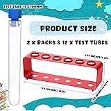 Package Inclusion: each package comes with 2 pieces of well structured racks and 12 pieces of test lab tubes; The set is sufficient for your experimental, party decoration, or storage needs, reducing the need for recurrent purchases Quality Material for Durability: the test tubes with racks are made of quality plastic which ensures durability and longevity; They are not easily prone to breaking or cracking, making them suitable for various applications Vibrant and Appealing Color Scheme: this set of test tubes and test tube holders sports an attractive color scheme; The racks are red, while the test tubes are transparent and capped with a blue lid that adds an appealing touch; The striking color combination adds a dash of dynamism to your experimental or decoration settings Proper Size for Your Needs: the test tube holder racks come in the size of 5.91 x 1.42 x 1.97 inches/ 15 x 3.6 x 5 cm, and the test tubes are 15 x 100mm, providing sufficient space to hold your substances; Their ideal size makes them easy to handle and gain precise control over your experiment or decoration tasks Features for Fun and Safe Experiments: the set comes with caps for the plastic test tubes that assure a good airtight seal; Simply pour your sample into the test tube, turn on the cap and place the test tube on the rack for your observations, this feature ensures a secure hold, preventing the likelihood of accidental spills or leaks