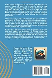 - In the ever-evolving world of data systems, Apache Kafka has carved a niche, becoming the linchpin of real-time data streaming for countless enterprises. As the demand for real-time data solutions surges, so does the need for adept professionals fluent in this transformative platform. "Apache Kafka: 100 Interview Questions" is your definitive guide to mastering the intricacies of Kafka, tailored for the modern professional.This meticulously curated volume distills the essence of Kafka into a series of incisive questions and comprehensive answers. Spanning the spectrum from foundational principles to the most nuanced details, each question is rooted in real-world scenarios, reflecting challenges faced in actual deployments and the solutions that experts swear by.But this book offers more than mere preparation. It's a deep dive into Kafka's vast ecosystem, a journey through its multifaceted architecture, and a testament to its transformative impact on the data landscape. Whether you're an aspiring data engineer, a seasoned Kafka developer, or a veteran architect aiming to validate your expertise, this book is your compass.Eloquently penned and enriched with insights, "Apache Kafka: 100 Interview Questions" is not just a resource—it's an investment in your professional future in the realm of real-time data streaming.