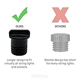 Cover ununsed standard (E26 base) light sockets Twist in design is easy to insert and remove Plug unused/unwanted string lights to create a more uniform look Plug sockets in recessed can lights to protect from painting