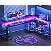 • 【Gaming Desk with LED Lights】:This l shaped desk with shelves features built-in LED lighting in 10 colors, 10 lightning modes to create an immersive gaming atmosphere. It has memory function to keep the LED lights staying on last mode when turned on.