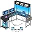 • 4 AC outlets & 2 USB ports: Equipped with 4 AC outlets and 2 USB ports, the l shaped gaming desk provides fast charging for your work and gaming devices, fully meets the demands of your charging needs. Say goodbye to the hassle of finding power outlets around the room. Plus, a 6.5ft power cord allows you to place this small computer desk wherever you please.