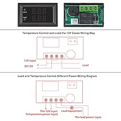 【What You Will Get】4pcs 12v electronic temperature controllers(comes with instructions); Operating voltage: DC12V 200mA; Temperature measuring range:-50 to 110℃ (-58 to 230 ℉); Resolution: 0.1℃ at -9.9 to99.9, and 1℃ at other temperature intervals;refresh rate: 0.5 s. 【Dual Color LED Display Monitor】Temperature controller monitoring instrument, show the measured temperature (red) and set temperature (blue) at the same time.which can be applied for cooling/ heating mode, you can test indoor or outdoor temperature. 【NTC 10K Waterproof Sensor Probe】The NTC (10K 0.5%) temperature sensor probe is waterproof, rogrammable heating/cooling mode, delay start, high temperature alarm, Celsius/Fahrenheit mode, etc. 【Wide Application】The 12v electronic thermostat can be widely applied in intelligent home and industrial equipment, suitable for household appliances, automatic irrigation, office machines, audio, automobiles, aquarium, fish tank etc. 【Reliable to Use】Indicator: Lights on, relay closed. Lights out, relay disconnected.