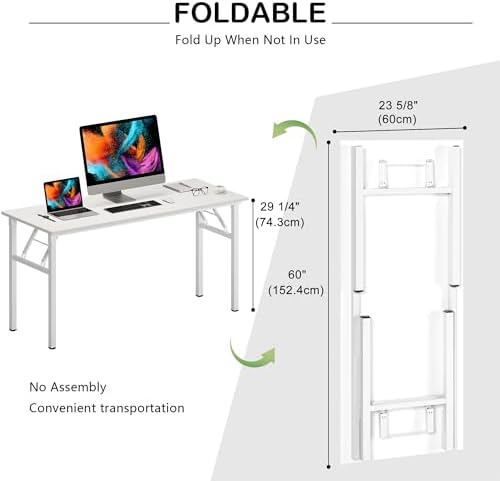Need Home Office Desk Large Computer Desk 60 inch Sturdy Table Foldable Desk Gaming Computer Table No Assembly Required, White&White Frame AC5DW(152.4 * 60)