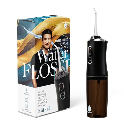 PURSONIC Mario Lopez Rechargeable Water Flosser - 360° Cordless Water Flossers for Teeth and Gum Massage - 7.5ounce Tank Water Dental Flosser with 3 Modes