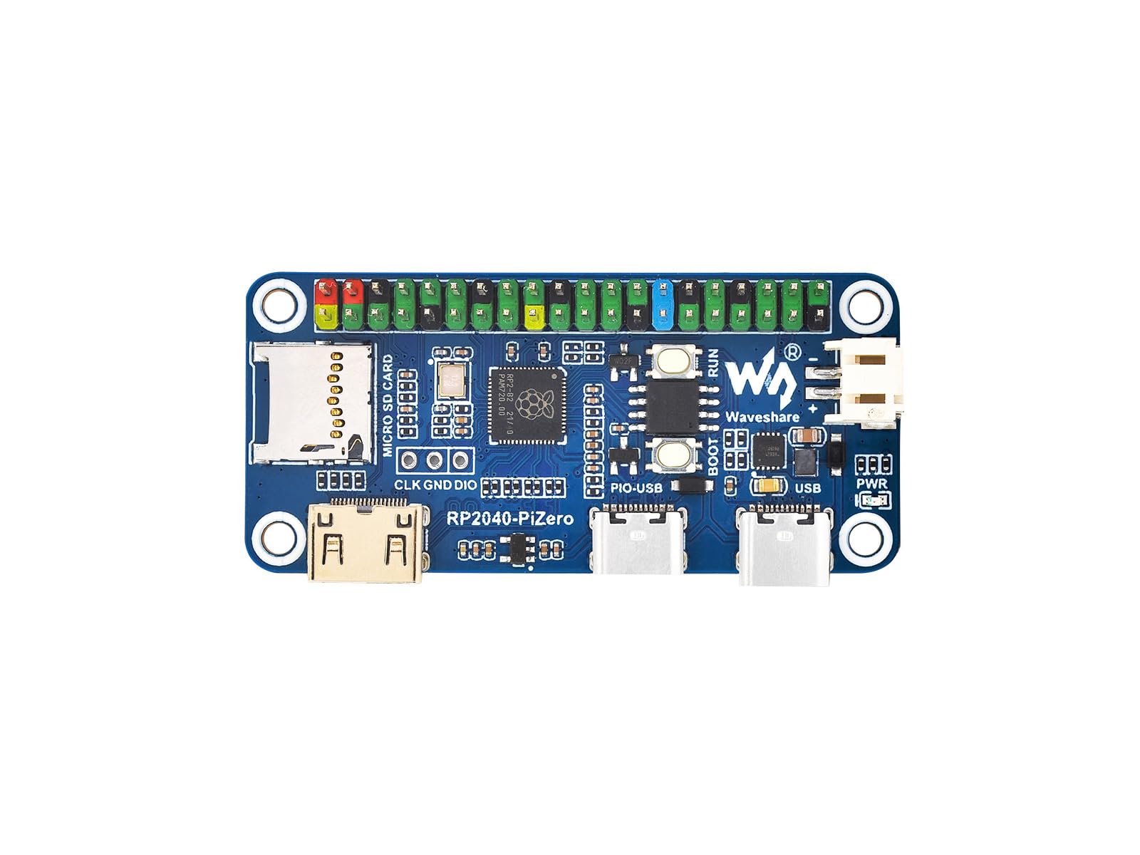 - RP2040-PiZero is a high-performance and cost-effective microcontroller board, based on Raspberry Pi RP2040 dual-core processor, flexible clock running up to 133 MHz, 264KB of SRAM, and 16MB of onboard Flash memory