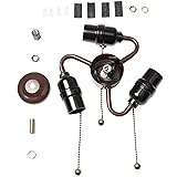 Bieye SC02 E26 Light Socket Cluster with Pull Chain Switch and Electrical Wiring Accessories (3-Light, Brown)