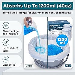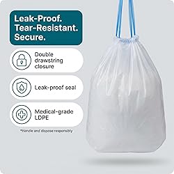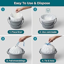ABSORBENT, DURABLE, & RELIABLE: Our 100-pack of liners include commode absorbent pads that absorb up to 40 oz of liquid for a cleaner, odorless environment; Each liner features a double-layer drawstring to handle large capacities and a leak-proof seal for additional protection; Crafted with quality, medical-grade LDPE, our 0.4mm thick liners resist tearing, providing a dependable solution for toileting COMPATIBLE & PORTABLE: These commode bags are universally compatible, making them perfectly sized for most commodes and toilets, including commode chairs, pails, and bedpans; If you’re away from home, have peace of mind knowing each commode liner is also compatible with RVs and bio-toilets for on-the-go cleanliness and convenience CLEAN & CONVENIENT: The secure drawstring design allows for quick and easy tying for disposal while the strong structure and seal ensure no mess is left behind, keeping your environment clean and odorless; Our bedside toilet liners are individually wrapped for hygiene and accommodate any bodily waste, making them a versatile choice for diverse needs and settings CONFIDENCE RESTORED: Thoughtfully tailored for those facing challenges accessing the toilet due to age, illness, surgery, or mobility issues; Our adult potty chair liners simplify the personal care process, empowering users to maintain their autonomy and dignity irrespective of physical limitations SAFETY & QUALITY ASSURED: Enjoy peace of mind knowing that our adult commode liners are backed by authoritative standards; These liners have undergone rigorous testing and are compliant with international hygiene, quality, and safety guidelines–a testament to our dedication to providing quality and a sense of security