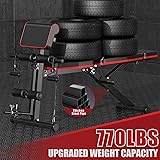 Enhanced Stability & Safety - GIKPAL weight bench is built with a robust & thick steel frame, the backrest adopts a fixed knob latch, which ensures stability and durability during intense workouts, which can withstand up to 770 pounds. Extended Headrest & Protect Neck - Extended & ergonomic headrest was designed by GIKPAL's professional product team, which can help to reduce discomfort and strain on the neck and back while serving a wider range of heights of people. Fast Adjust - Our adjustable weight bench features multiple backrest positions, just loosen the locking pin to quickly adjust to the incline, decline and flat, which can target specific muscle groups and customize your workout plan according to your workout level. Comfortable Workouts - The backrest, headrest and seat of our workout bench are equipped with thick and high-density foam padding, is sweat-proof and tear-resistant, allowing you to perform any exercise with comfort. Leg Extension & Preacher Pad - This exercise bench comes with additional resistant bands, leg developers and a preacher pad, which adds versatility to your workouts, so you can do exercises like leg/preacher curls and extensions, targeting your lower body and arm effectively. Scientific Exercise & Space Saving Design - Come with clear instructions and professional workout guidance, you can easily set it up and start your own workout routine. Compact and space-saving design, can be folded up when not in use. Note: Weight bench doesn't include weights plates, The leg weight rod can match the weight block with the inner hole of 1in and the max diameter of 8.7in.