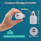 Premium Performance: The housing is made of V0 grade flame retardant PC, Corrosion-resistant and durable,Dual port output with a total current of 5V/2.4A and input with 100-240V Safety assurance: The power station has a protection system against overvoltage, over-currents, and overheating. Multipurpose:Convert light socket to power adapter Where there is no DC 5V adapter and there is an E26 light socket, this adapter can be used to get DC 5V power to decorative lights or Lighting Compact Design: Power up to 2 lighting devices with a adapter that’s roughly the size of Light Bulb EASY SETUP - Simply screw the light socket power adapter into the light Socket, get 2 ports 5V/2.4A output.