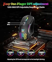 - Wired PC Gaming Mouse: RGB Backlit, Adjustable DPI, 7 Buttons. Ergonomic for Office & Gaming on Windows/Mac/Linux/Chrome-Black [E-sports level RGB light effect system] 360° surround streamer overflow light effect changes with the rhythm of the game in real time, Let the mouse become your game atmosphere commander, create a dedicated esports space. [Intelligent DPI Battlefield mode] Equipped with PMW3389 e-sports level sensor, 4-speed DPI second cut (1200/2400/3600), accurate to 1μm trajectory tracking ability. FPS mode automatic sensitization anti-shake, MOBA mode intelligent acceleration, professional player level control at your fingertips. 【 7-key tactical layout 】20 million click life, 0.3ms career level trigger feedback. It gives you easy access to various commands, macros and shortcuts on your computer. The double sniping key in the thumb area adopts the nano non-slip texture, and the blind operation accuracy is increased by 60%. [Marathon Ergonomics] 72-hour lab-polished dragon Ridge curve palm rest, nano porosity matrix + skin friendly frosted coating surface, maintain 0.4℃ temperature control for 8 hours. Provide a comfortable grip for each player. [Full platform intelligent adaptation] Plug and play, support Windows/macOS/Linux system automatic recognition. If you have any questions, please feel free to contact us and ONIKUMA GAMING will answer your questions within 24 hours!