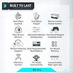 💟Note: Supported Multi-Platform: Switch/Switch 2/iOS/Android/Windows PC 💔Not compatible with Xbox, PlayStation or GeForce Now, For game platforms not mentioned, please consult customer service before buying. 🎮【RGB LEDs with 5 Modes】🎮 Unleash your individuality with the Machenike G5 Pro PC controller. Boasting five ultra-personalized light effects, fine-tune key frame animation, adjust speed, brightness, and even choose from a palette of five vibrant light bead colors. This remarkable feature empowers you to craft a gaming controller that not only enhances your gaming adventures but also reflects your unique personality. 🎮【Hall Effect Sensing Sticks】🎮Machenike G5 Pro gaming controller features Hall-effect sensing sticks. The durable sticks provides accurate anti-drift glide, provides gamers with an exceptional level of control and precision. 🎮【Hall Effect Analog Triggers】🎮It revolutionize your gaming experience, offering lightning-fast response times, seamless gameplay, and extended controller longevity. Whether you're immersed in first-person shooters, racing simulations, or any gaming genre, our controllers with Hall Effect triggers empower you to conquer the competition with unmatched precision and speed. 🎮【Built-In 6-AXIS GYRO】🎮Immerse yourself in the world of gaming with our cutting-edge 6-axis gyro technology. Experience unparalleled control as you tilt and rotate the controller, seamlessly guiding your character or vehicle through the game. Elevate your gaming experience and feel like you're truly a part of the action. 🎮【4 Programmable Back Buttons】🎮 PC wireless controller's back buttons are fully programmable, so you can assign any function or command you want. Easier controls with the 4 macro back buttons to map to a single button or a set of buttons.