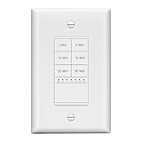 LIDER 30-Minute Countdown Timer Switch with Wall Plate, 800W, No Neutral Required, 1-5-10-15-20-30 Minutes, for Lights or Fans, UL Listed, LED Indicator, White, Wall Plate Included
