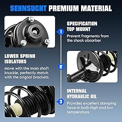 - SEHNSUCHT Front Complete Coil Spring Strut Shock Absorber Assemblies Fitment for Toyota: For Camry 3.0L 1997-2001 For Solara 3.0L 1999-2003 For Avalon 1997-2003 Fitment for Lexus : For ES300 1997-2001(Note: Without Adaptive Variable Suspension) Replace Number:Replaces for 271679, 271678. Package Includes: Front Strut & Coil Spring Shock Assemblies*2 Tips: Please check your vehicle model carefully before purchasing. If you have any questions about Complete Coil Spring Strut shock absorber, just feel free to contact us!